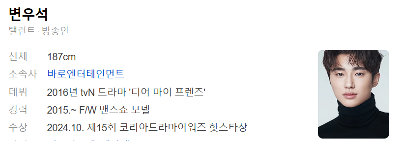 이 사진은 변우석의 모습으로, 그의 진지한 표정이 인상적이에요.