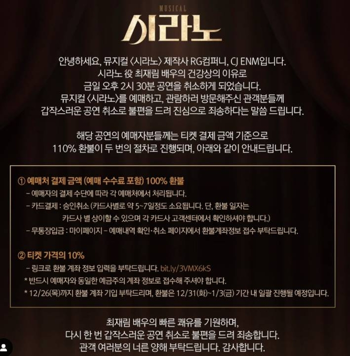 공연이 취소되면서 관객들은 많은 불편을 겪게 되었죠. 제작사는 티켓 구매자들에게 100% 환불 또는 향후 구매 시 10% 할인 혜택을 제공한다고 안내했어요. 이러한 조치는 관객들의 이해를 구하기 위한 노력으로 보이네요.