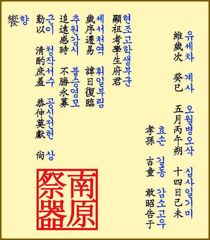 축문 작성 방법
