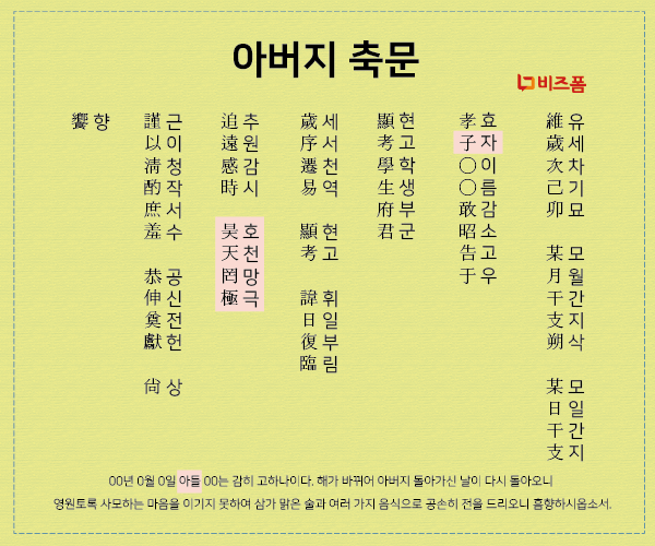 - 제목 작성 : 축문의 제목을 정중하게 작성해요.